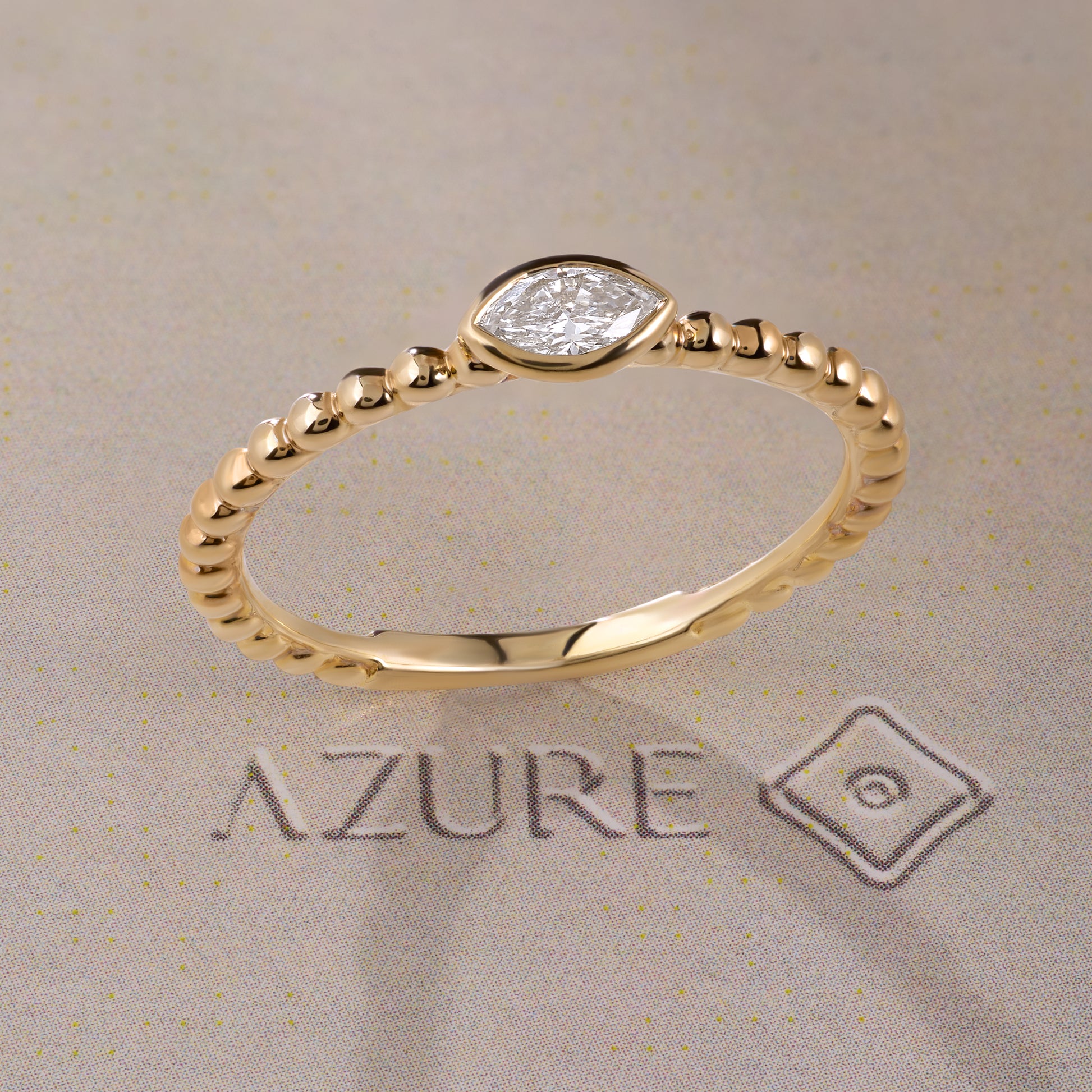 Elevate your everyday style with this sophisticated 14K yellow gold ring, featuring a striking Marquise diamond accent that catches light with refined sparkle. The delicate beaded gold band adds texture and dimension, creating a piece that transitions seamlessly from morning meetings to evening occasions. The timeless yellow gold glow ensures this becomes a cherished staple in your jewelry collection, offering understated elegance that never goes out of style.