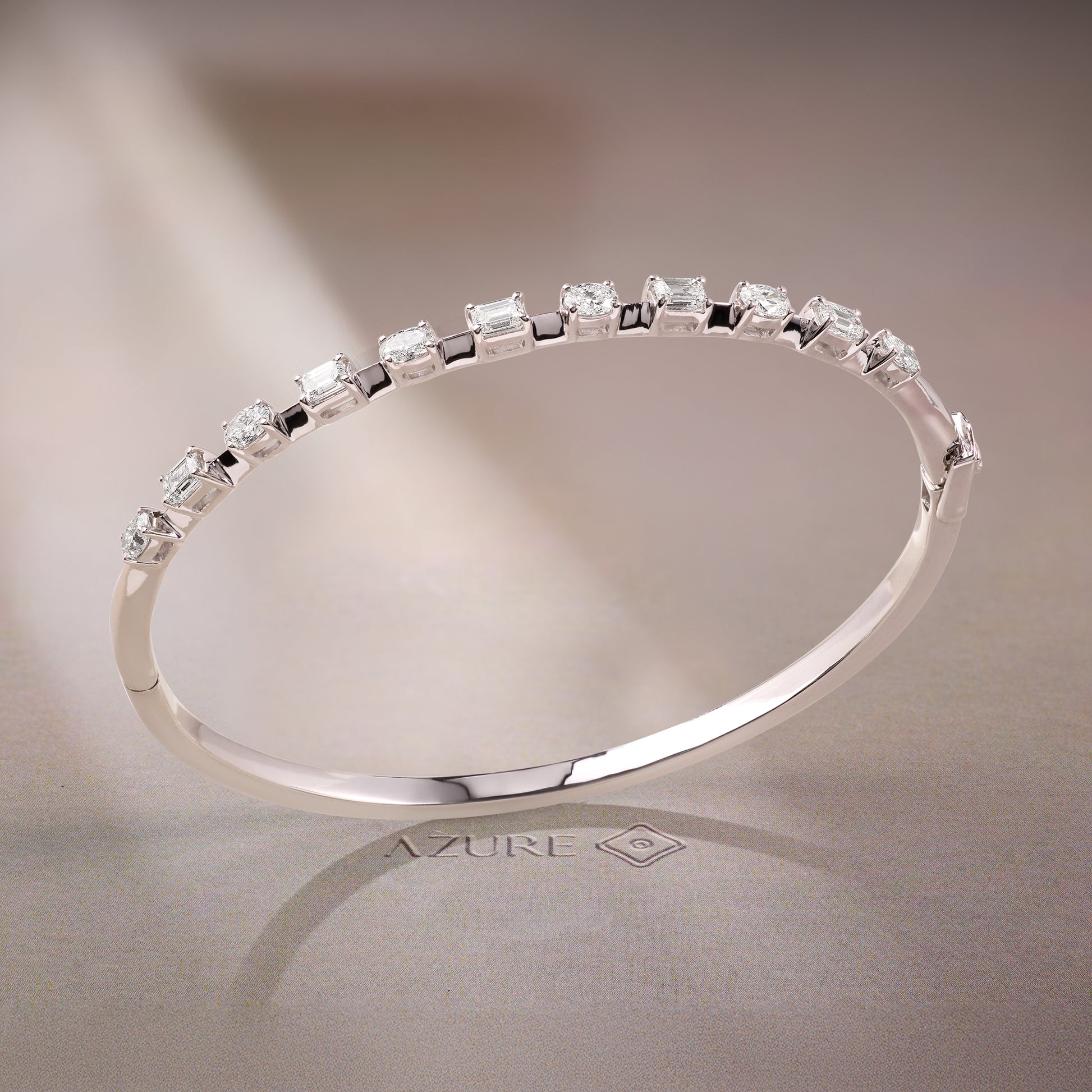 Elevate your everyday elegance with this 14K white gold bangle, featuring a refined blend of oval and emerald-shaped stones. Its classic design ensures seamless versatility from day to night, while the stackable style allows effortless layering for a personalized touch. Perfect for enhancing any look with understated sophistication.