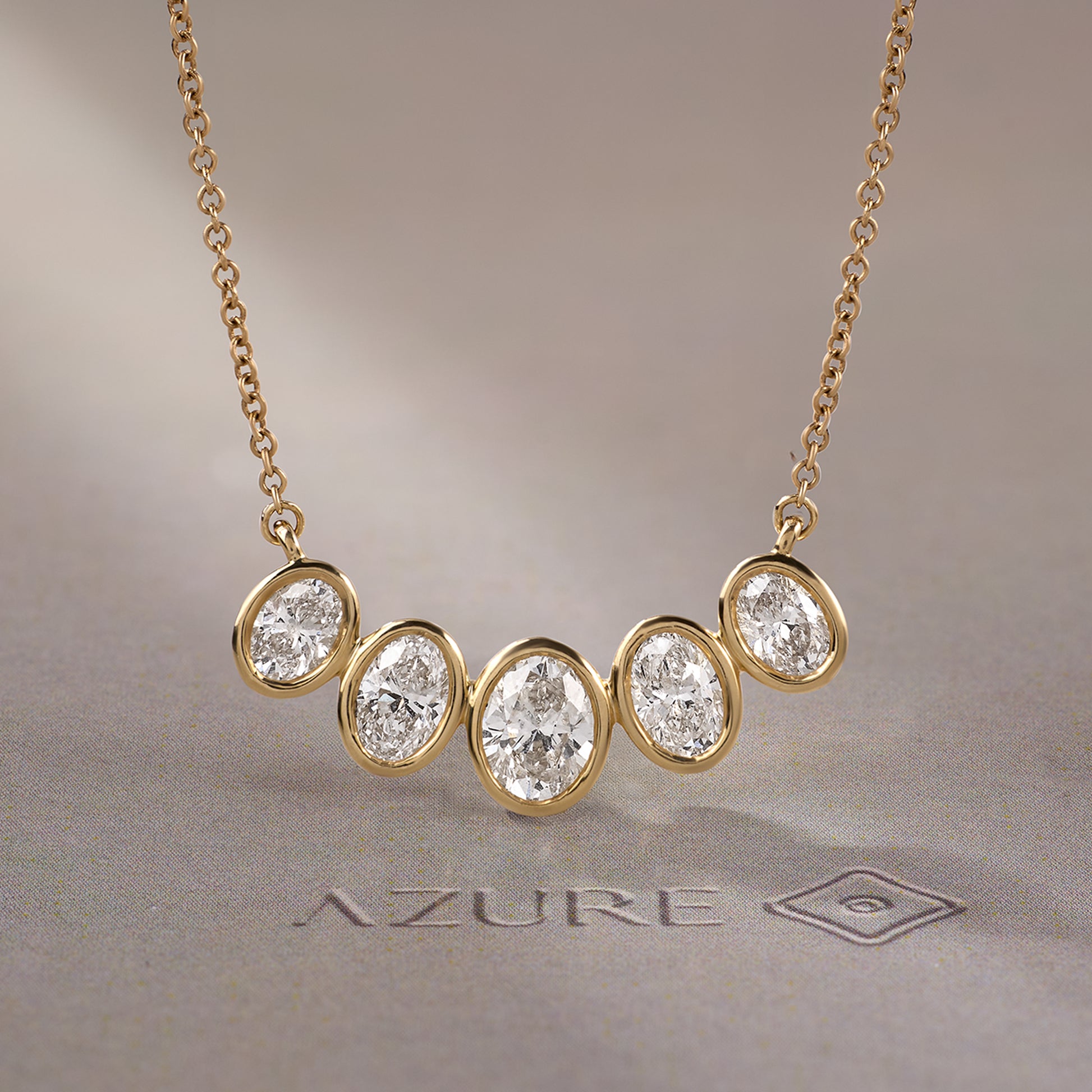 Elevate your everyday elegance with this exquisite 14K yellow gold pendant, featuring a graceful arrangement of Oval diamonds in graduated sizes. The refined sparkle catches light beautifully from morning through evening, making it the perfect companion for layering or wearing solo. Its timeless design transitions seamlessly between casual and formal occasions, offering versatile sophistication that complements any wardrobe. A testament to understated luxury and enduring style.