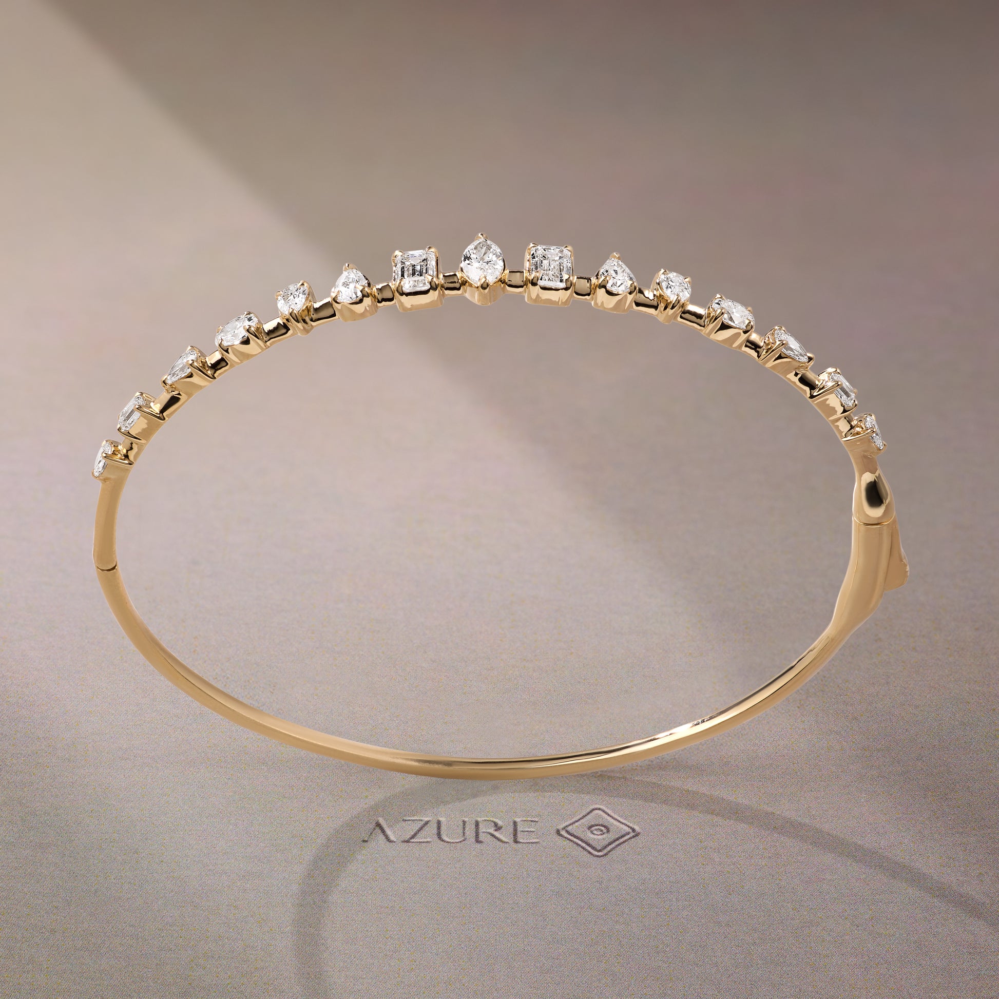 This 14k yellow gold bangle is designed for those who appreciate subtle yet confident elegance. Featuring a refined blend of oval, marquise, pear, and emerald shapes, its clean shine complements daily wear perfectly. Ideal for stack lovers, this minimalist piece adds a sophisticated touch without overpowering, making it a versatile addition to any jewelry collection.