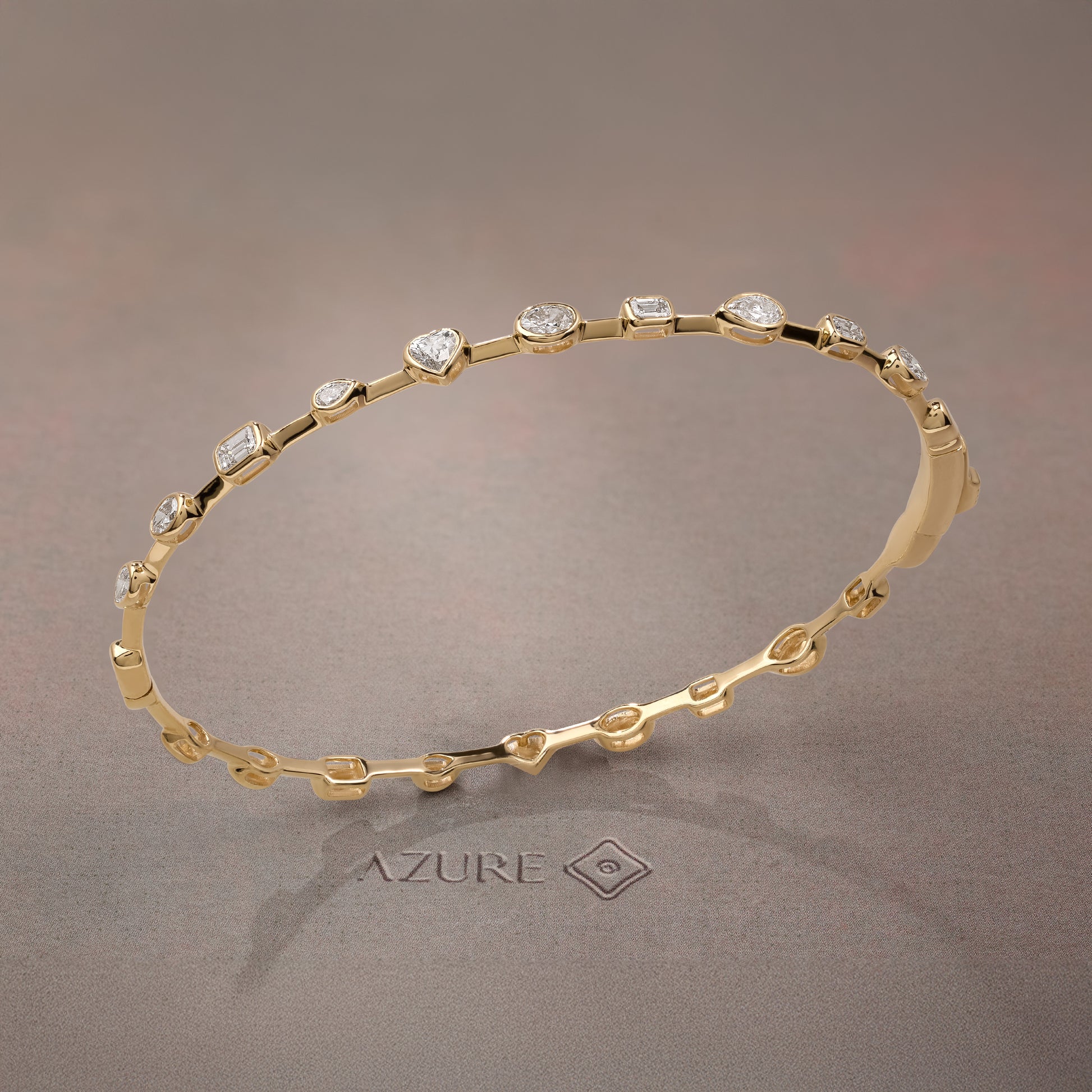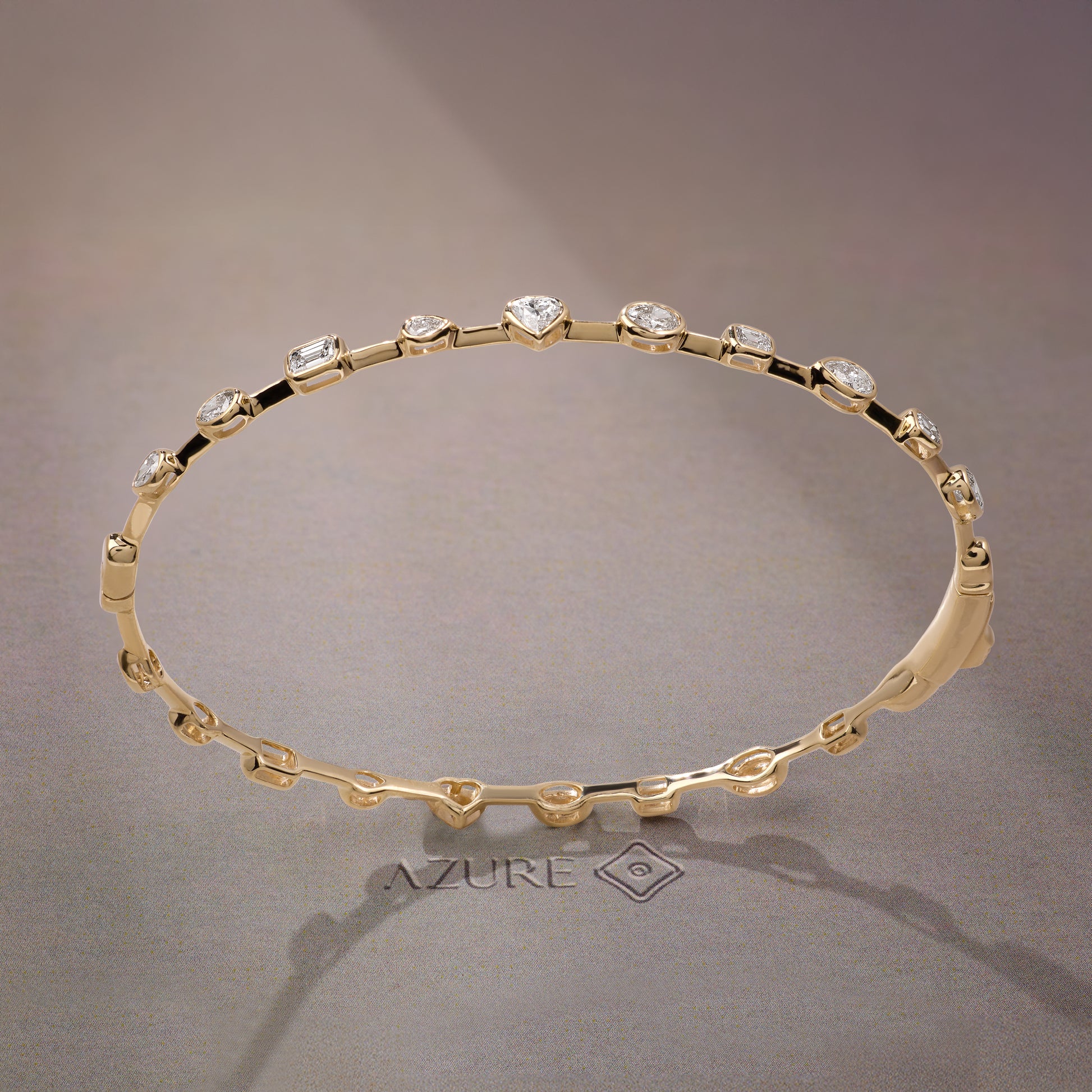 Elevate your everyday elegance with this 14K yellow gold bangle, designed to complement any AM-to-PM look. Its refined sparkle shines through a harmonious mix of oval, pear, emerald, and heart-shaped details, offering timeless sophistication. Perfectly stackable, this piece adapts to your style, adding subtle luxury throughout your day.