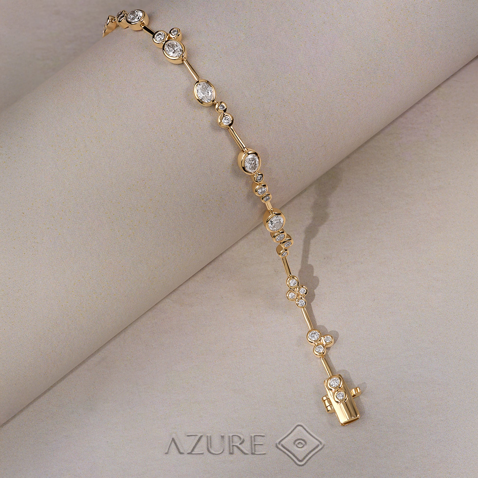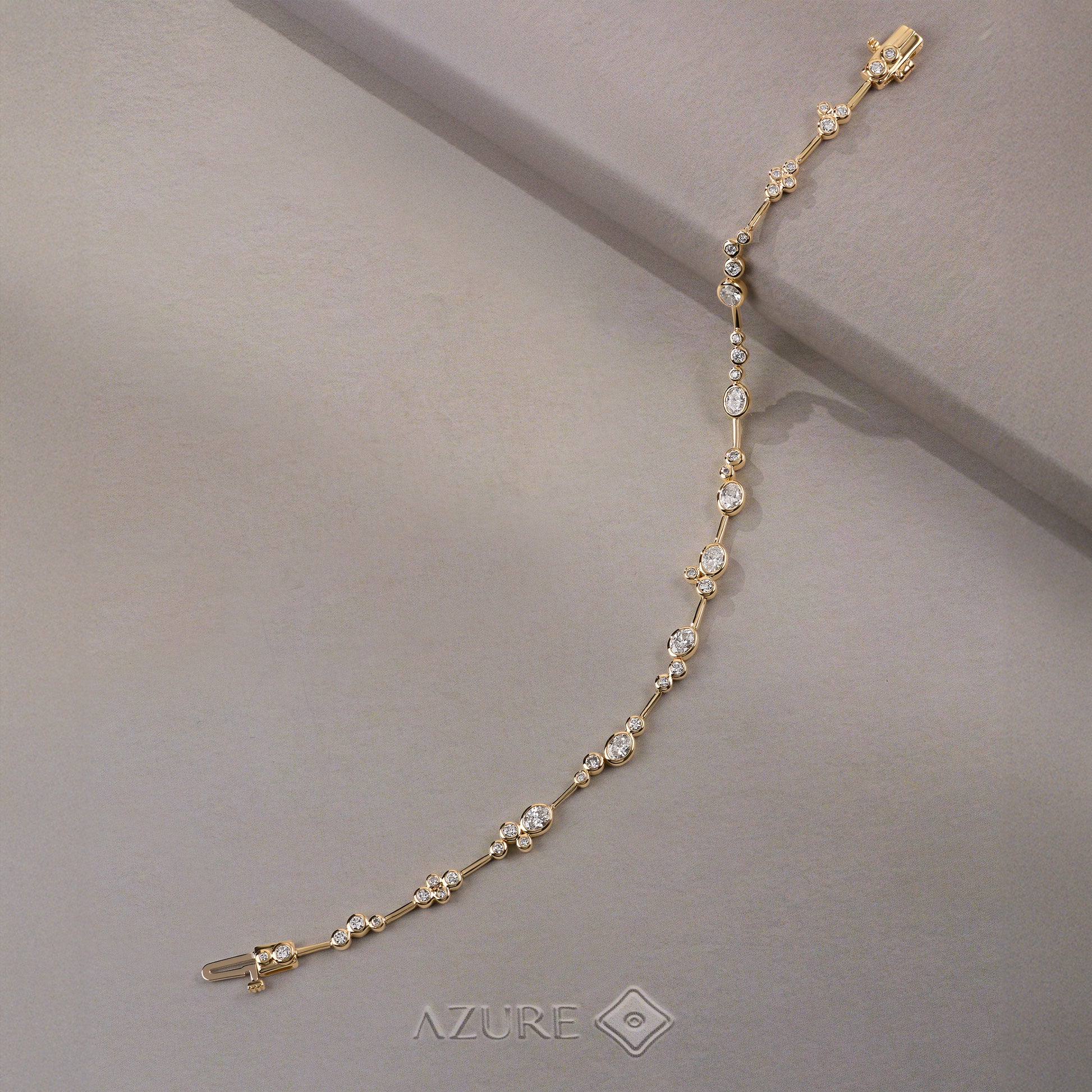 Elevate your wrist with this exquisite 14K yellow gold bracelet, where timeless elegance meets contemporary design. Featuring a harmonious blend of Oval and Round diamonds, each stone is meticulously set to catch light with brilliant sparkle. Handcrafted with precision, this fine jewelry piece showcases delicate gold work that balances understated sophistication with luxurious appeal. An investment in modern luxury that complements both everyday grace and special occasions.