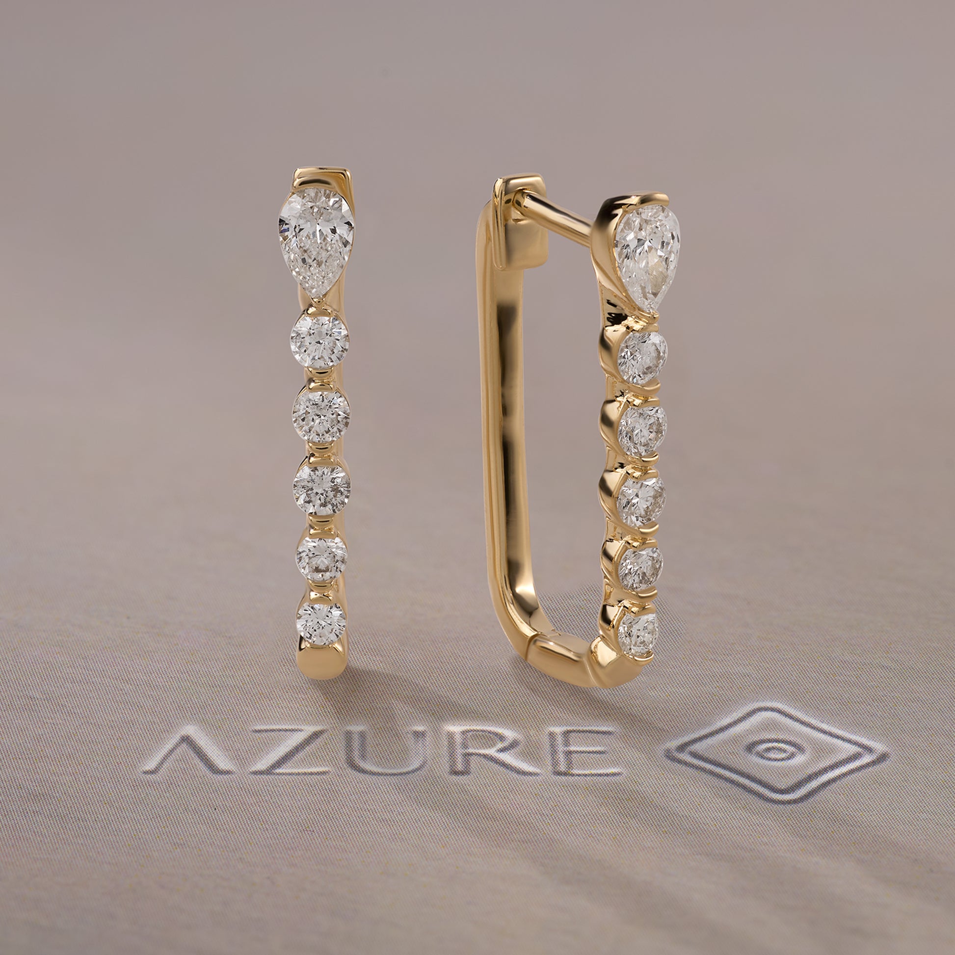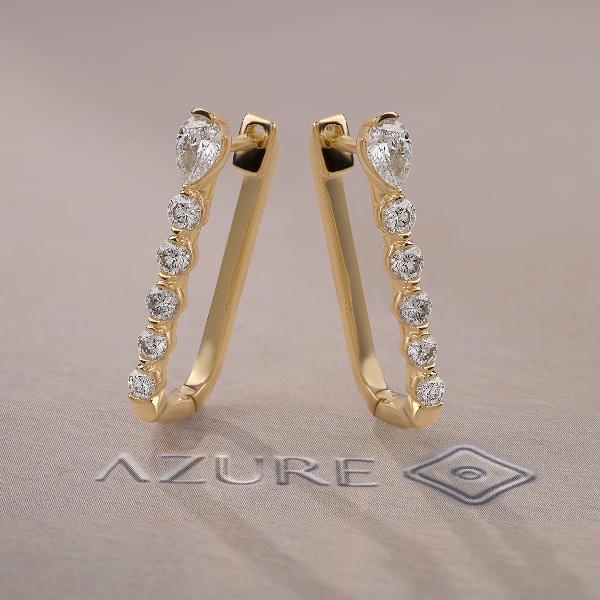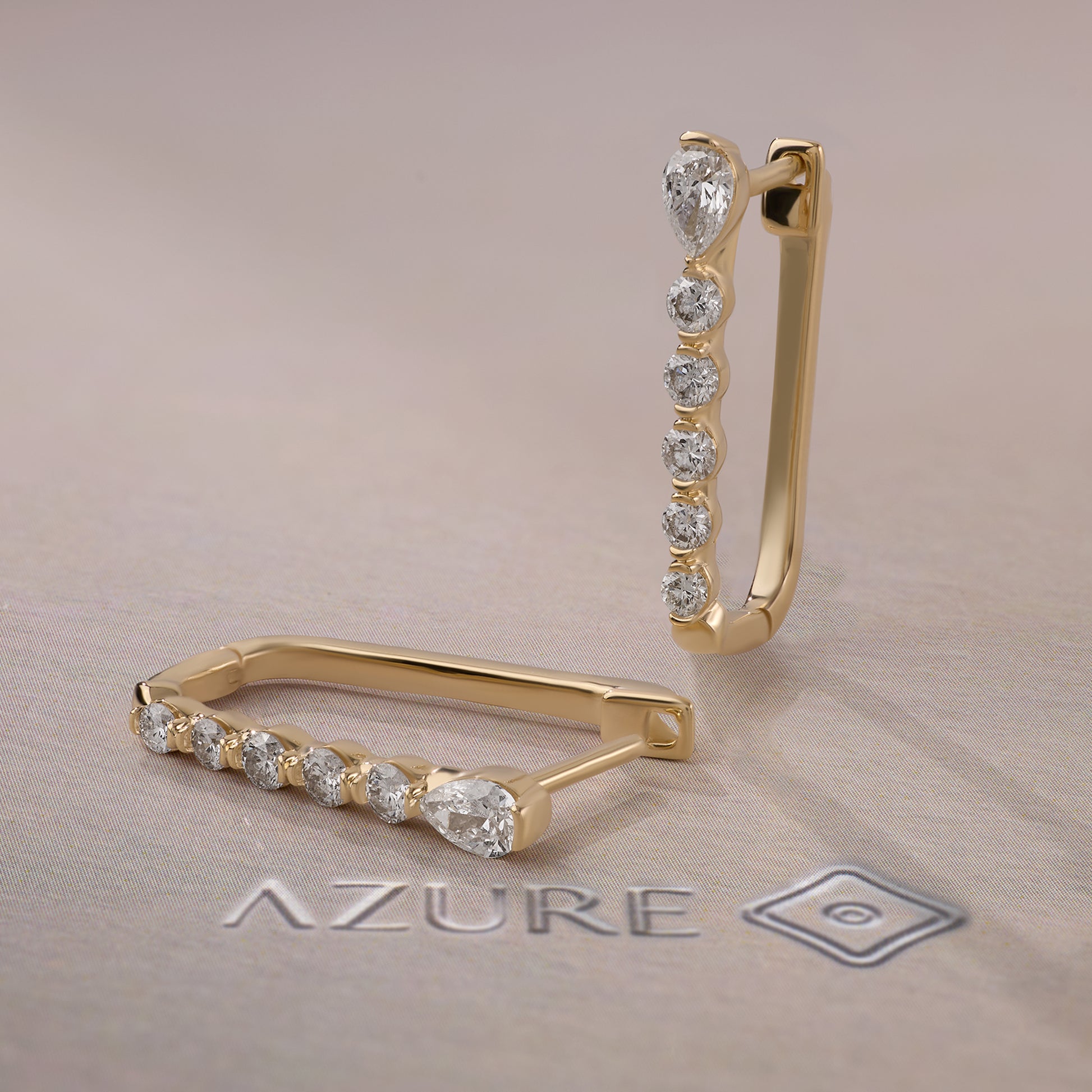 These 14K yellow gold hoops redefine modern luxury through architectural simplicity. An Pear diamond crowns each earring, anchored by a delicate cascade of Round diamonds that catch light with understated brilliance.  Crafted with refined precision, these stackable earrings embody the philosophy that true elegance requires nothing more than impeccable materials and thoughtful design. A sophisticated choice for those who value substance over excess.