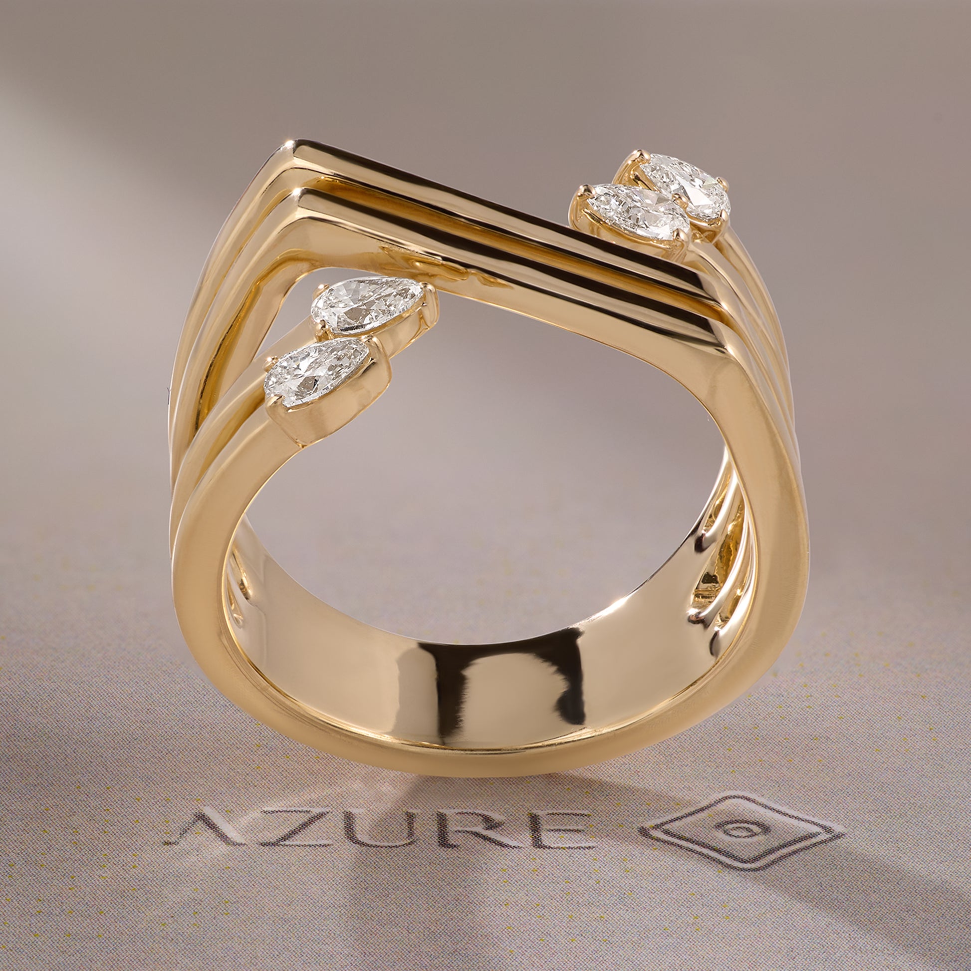 Elevate your everyday elegance with this stunning 14K yellow gold ring, where timeless sophistication meets contemporary design. The pear-shaped diamonds catch light beautifully, creating a mesmerizing sparkle that commands attention without overwhelming. Its crossover band and multi-layer construction deliver a bold yet refined aesthetic—a modern statement piece that transcends occasion. Perfect for those who appreciate luxury woven into daily wear, this ring balances classic beauty with an undeniably luxurious presence.