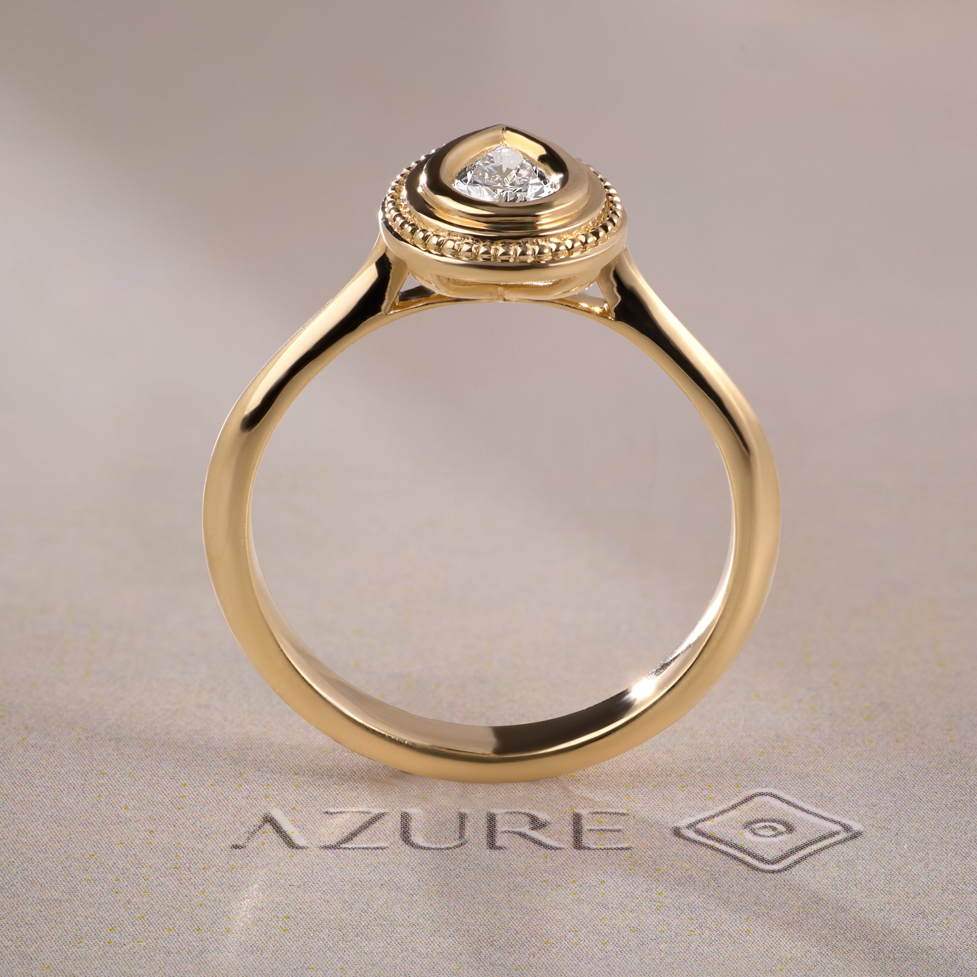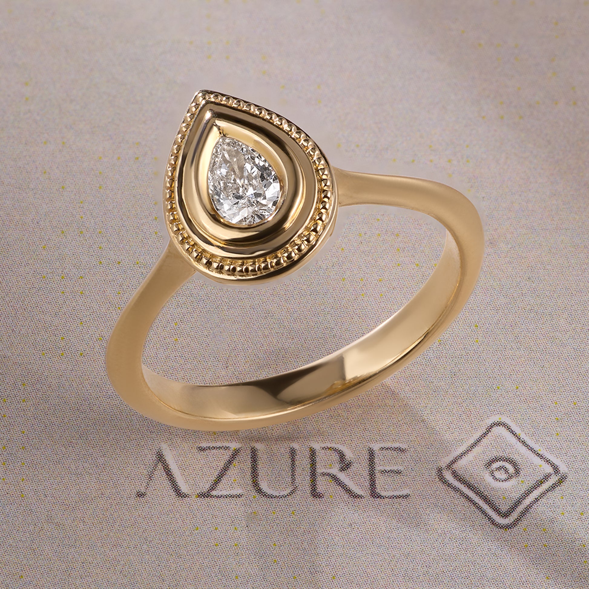 Discover timeless elegance with this exquisite 14K yellow gold ring, featuring a stunning pear-shaped diamond in a secure bezel setting. The delicate milgrain border adds vintage charm while maintaining a refined, minimalist aesthetic. Handcrafted with meticulous attention to detail, this solitaire captures the perfect balance between modern sophistication and classic beauty. An investment piece that transcends trends, ideal for engagements, anniversaries, or as a cherished addition to your fine jewelry collection.
