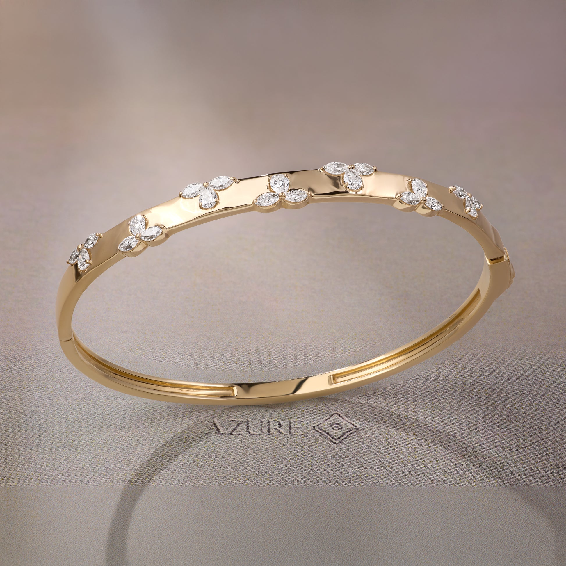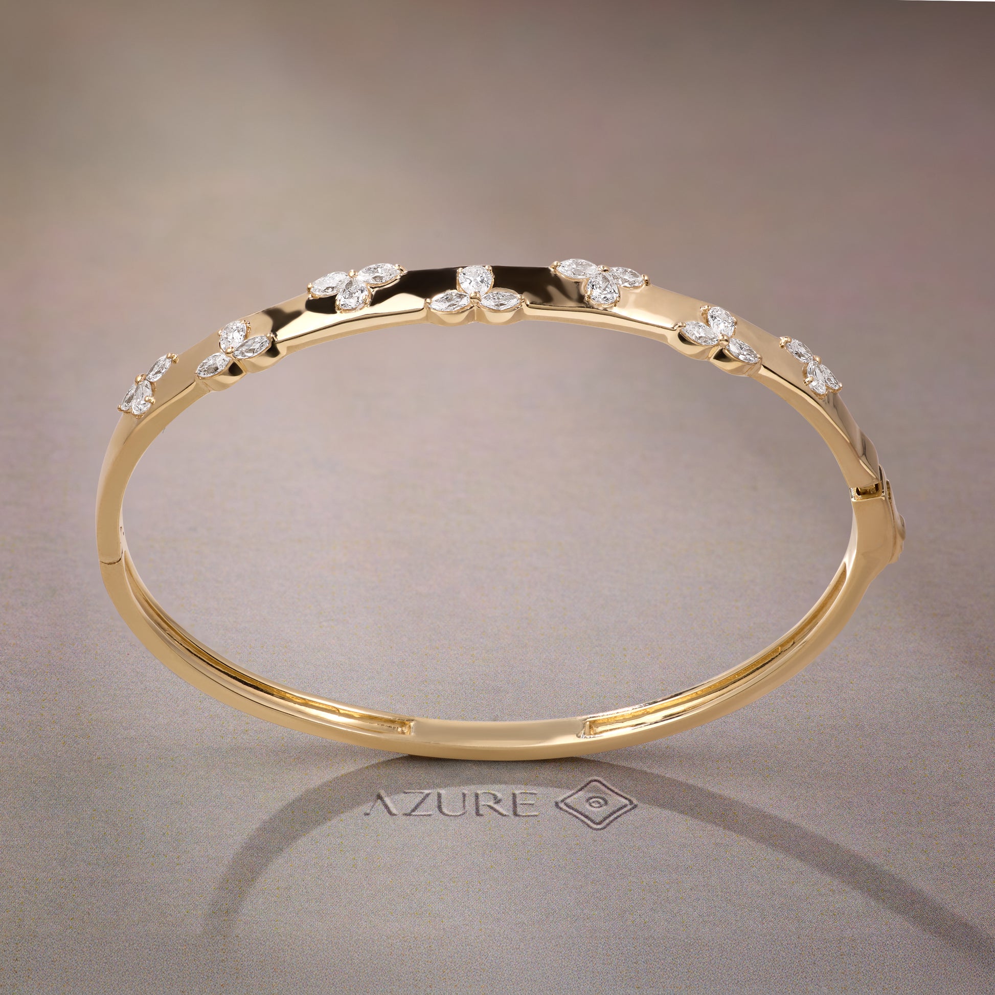 This yellow gold bangle features Pear and Marquise-shaped stones, perfectly balancing classic elegance with a subtle, low-key shine. Designed for the stack lover, it seamlessly transitions from work to weekend, adding an everyday luxe touch to your ensemble. Its refined design complements any style, making it an essential piece for sophisticated layering.