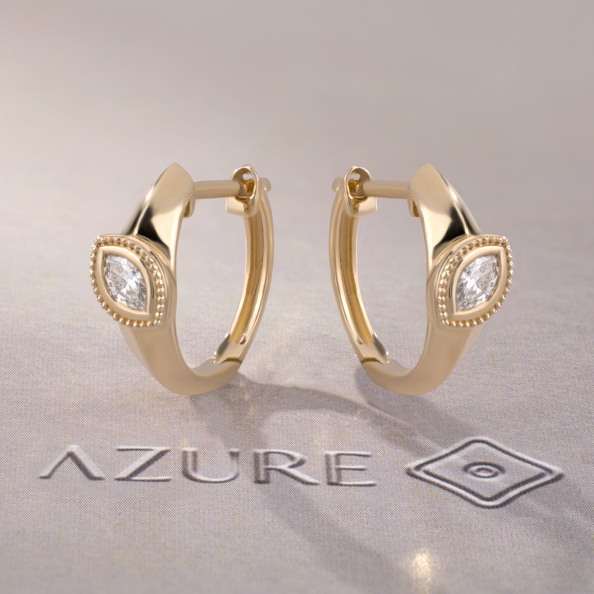 Indulge in sophistication with our timeless 14k yellow gold earrings. Featuring a Marquise diamond center with bezel and milgrain detailing, these modern classics offer refined sparkle for elegant everyday wear. From AM-to-PM, these stackable luxuries bring a refined touch to any outfit. Elevate your style with our exclusive and luxurious fine jewelry.
