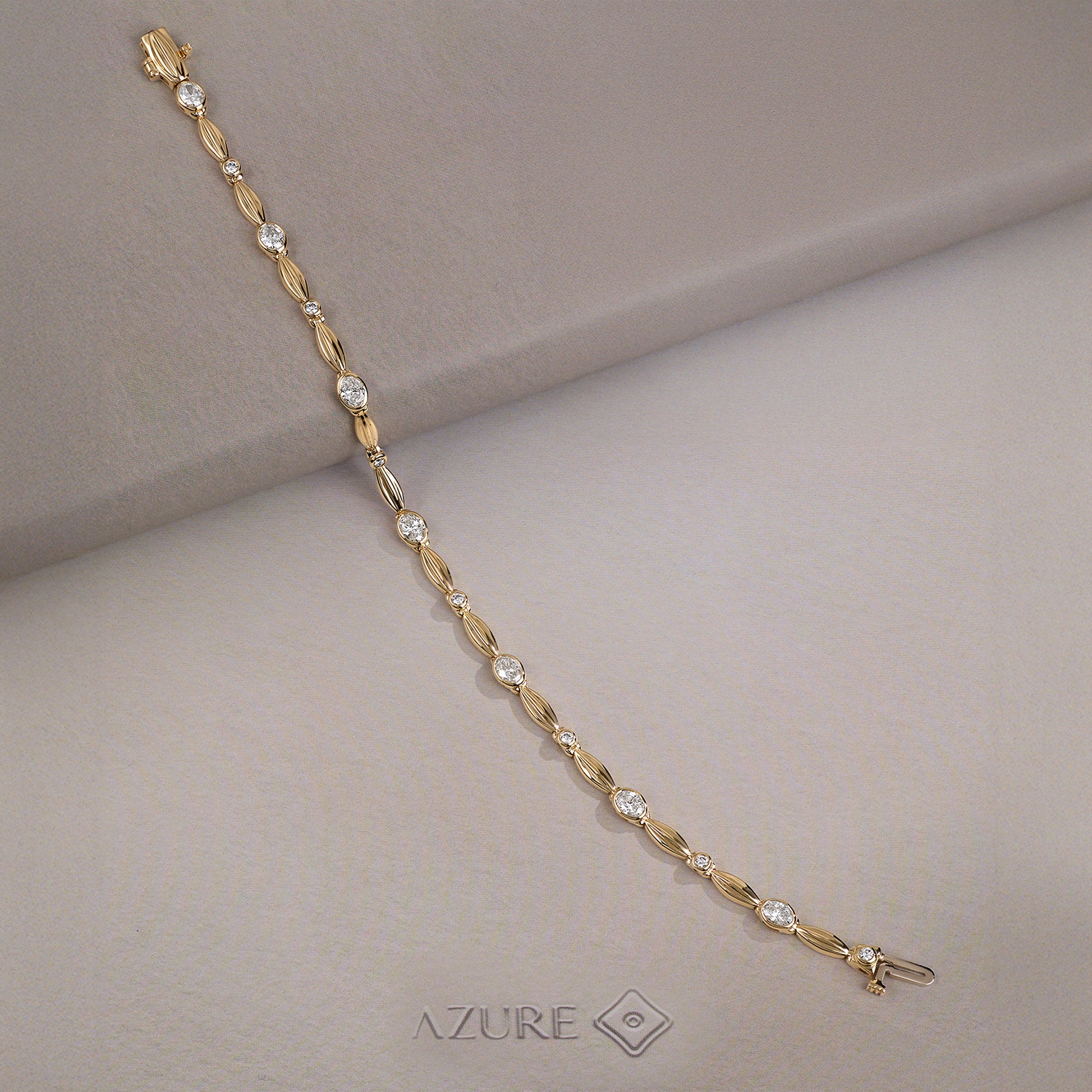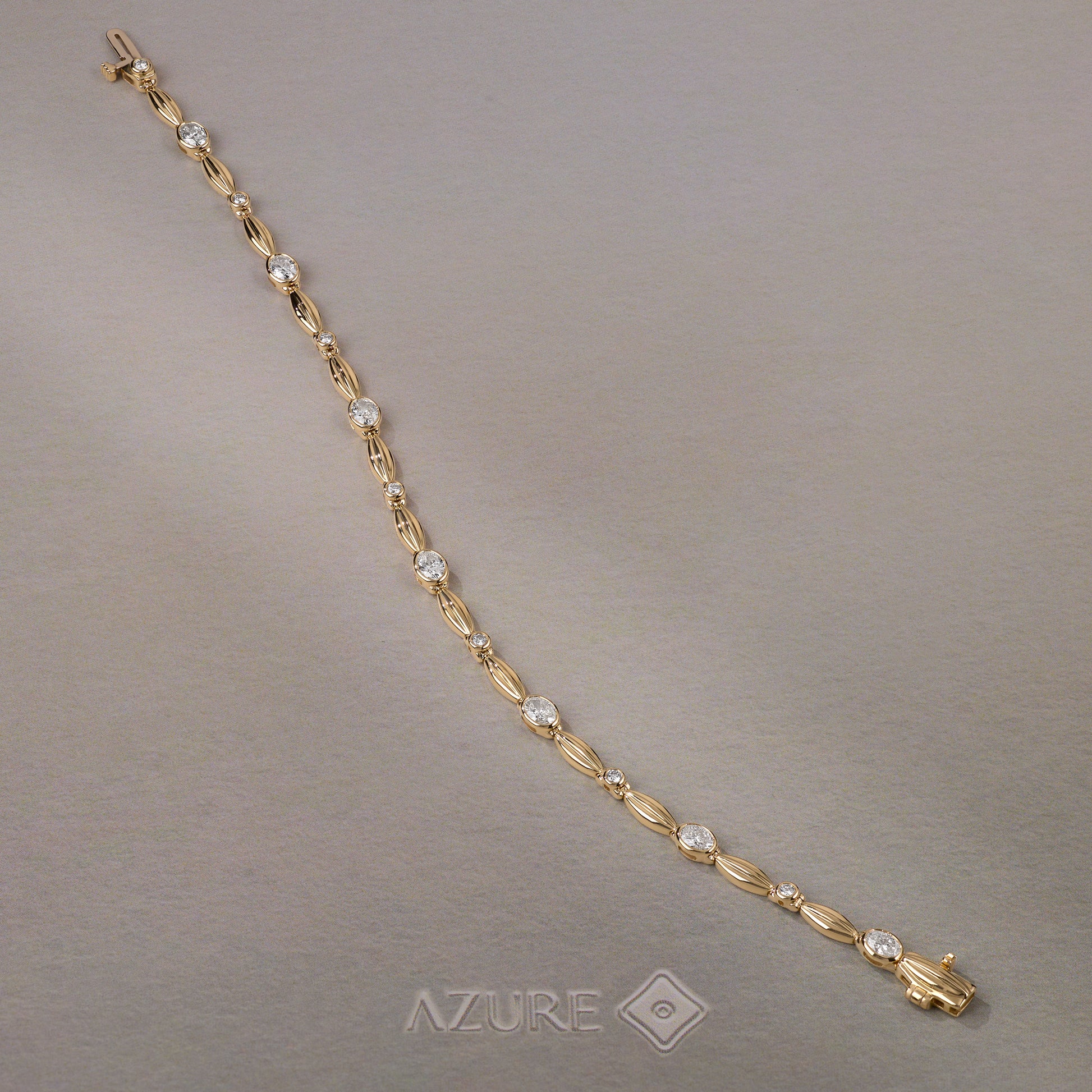Elevate your everyday elegance with this exquisite 14K yellow gold bracelet, featuring a harmonious blend of Oval and Round diamonds in a modern classic design. Each piece is meticulously handcrafted to showcase the brilliance of premium diamonds set within lustrous gold, creating a sophisticated accessory that transitions seamlessly from day to evening. This fine jewelry piece embodies timeless luxury and refined taste, offering the perfect balance of contemporary style and enduring elegance for the discerning wearer.