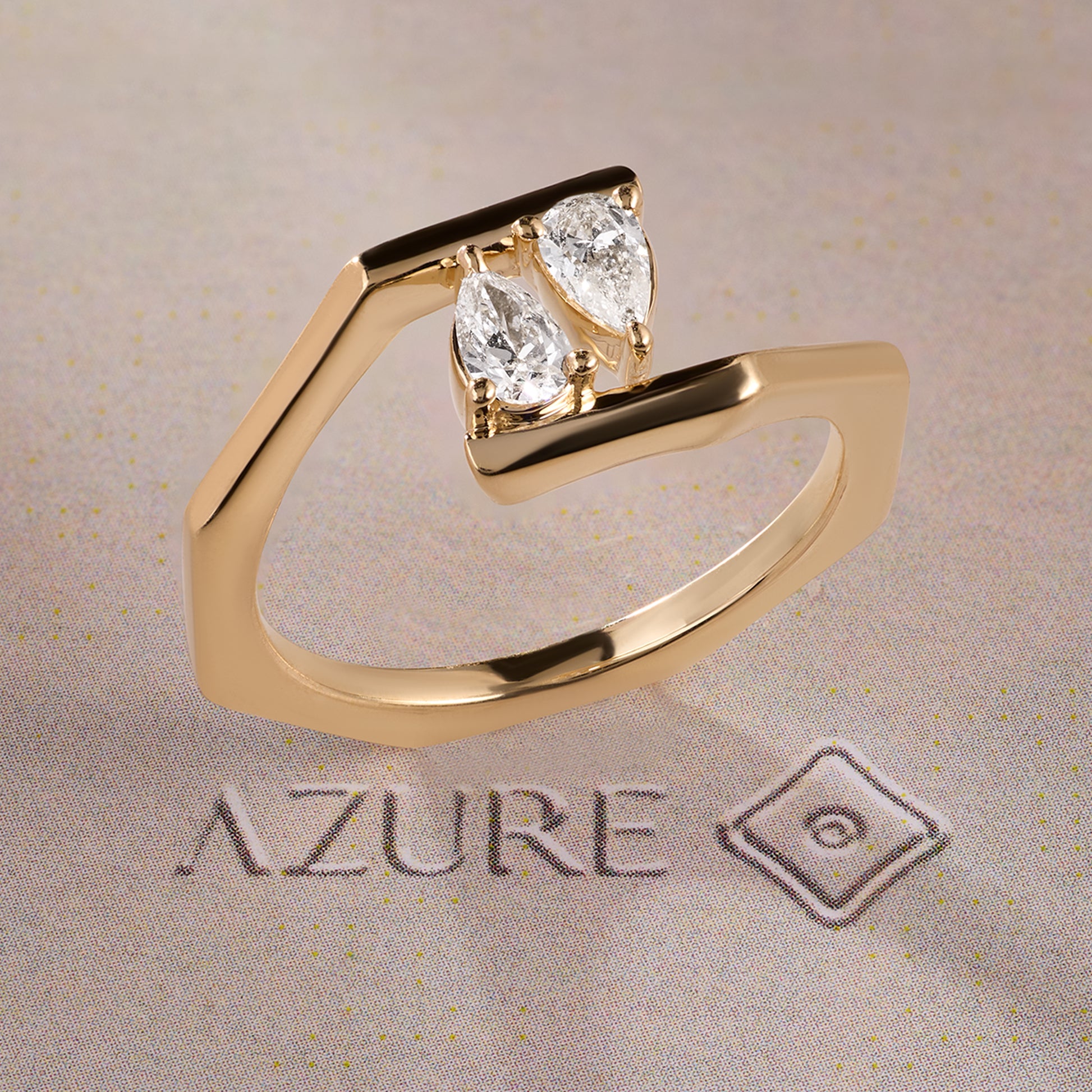 Discover architectural elegance with this striking 14K yellow gold ring, featuring luminous pear-cut diamonds set in an asymmetrical band. The modern minimal design creates a bold luxury statement while maintaining timeless sophistication. Perfect for those who appreciate contemporary craftsmanship with classic refinement, this piece seamlessly transitions from everyday wear to special occasions, embodying understated opulence.