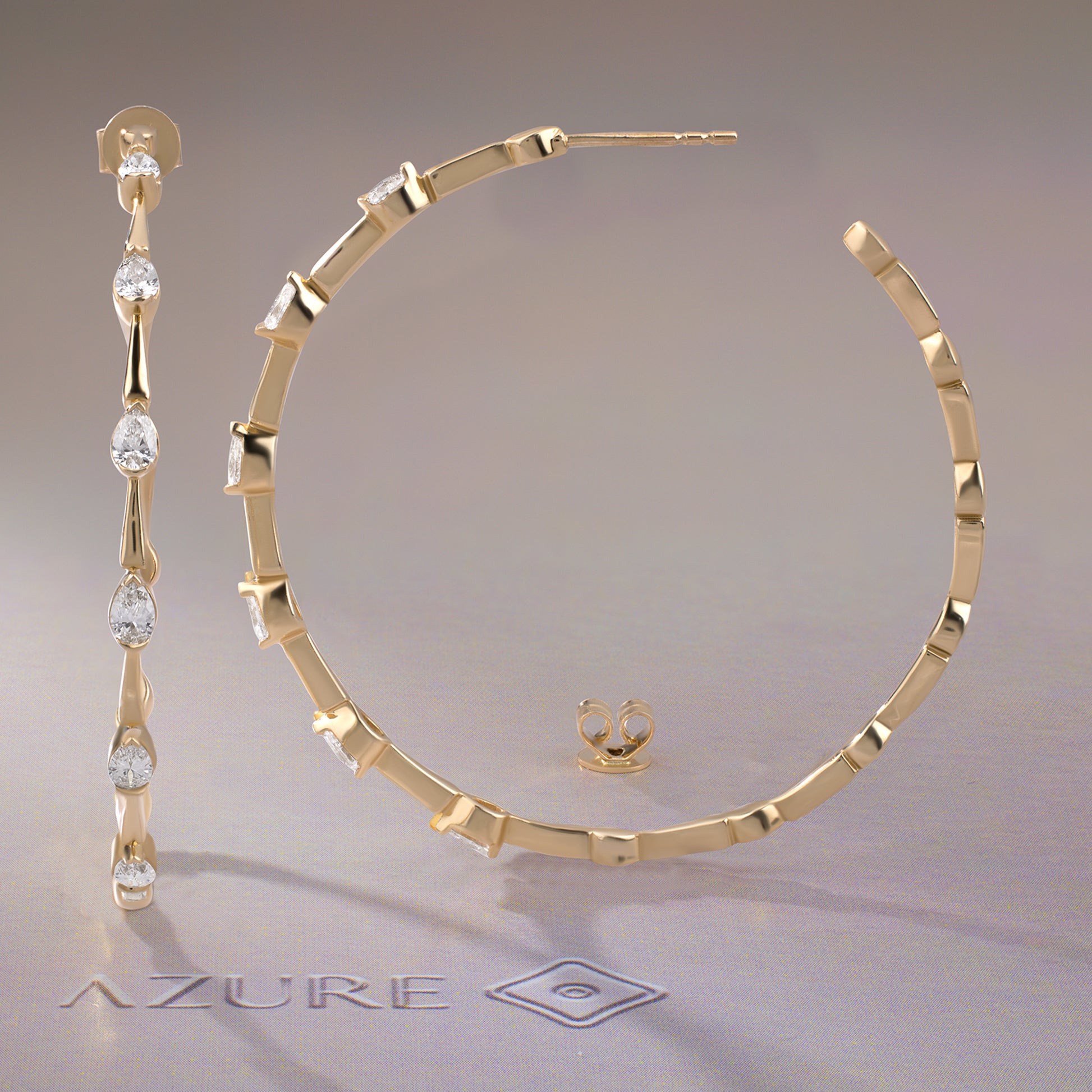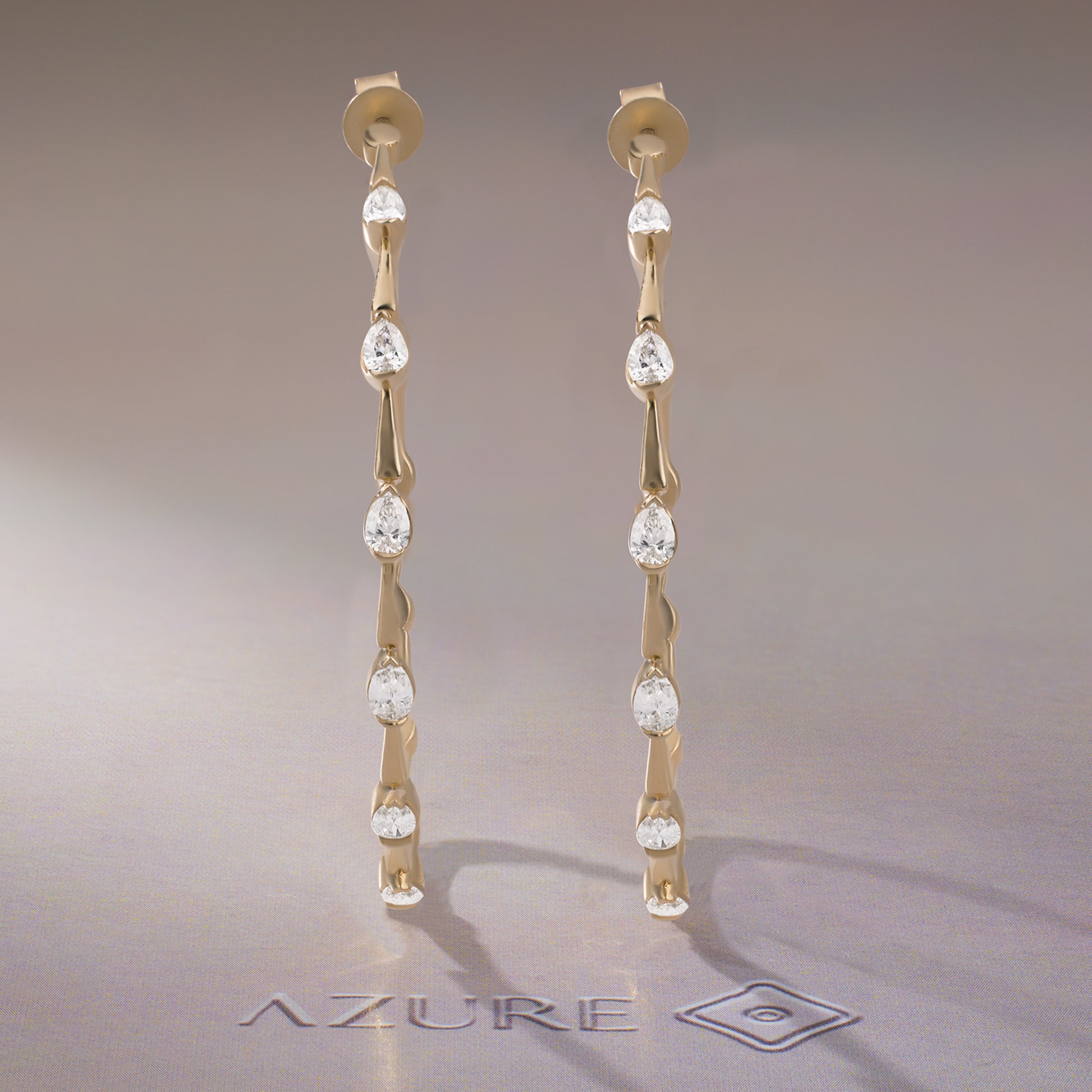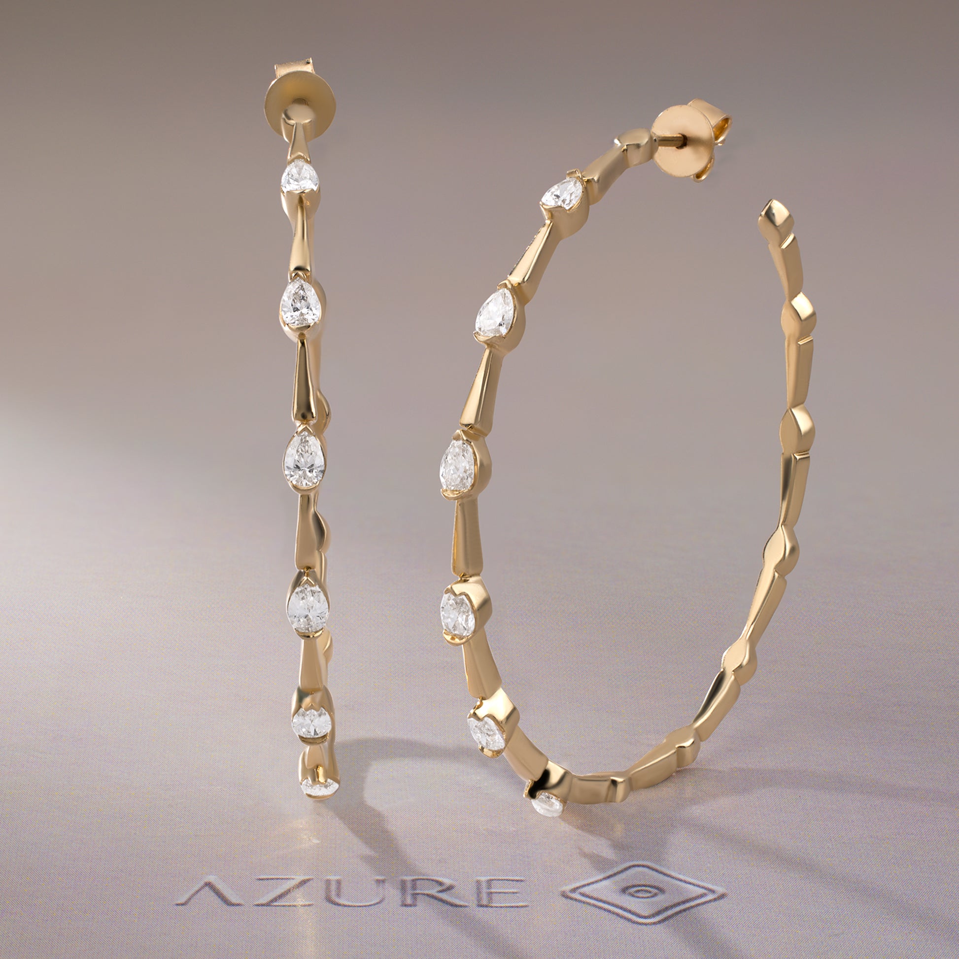 These 14K yellow gold pear-shape diamond hoops embody modern refinement for the contemporary collector. Crafted with meticulous attention to detail, they deliver a subtle luminescence that complements rather than dominates your aesthetic. Remarkably lightweight for extended wear, these stackable hoops offer the flexibility to build your own curated look or wear as a singular statement piece of enduring fine jewelry.