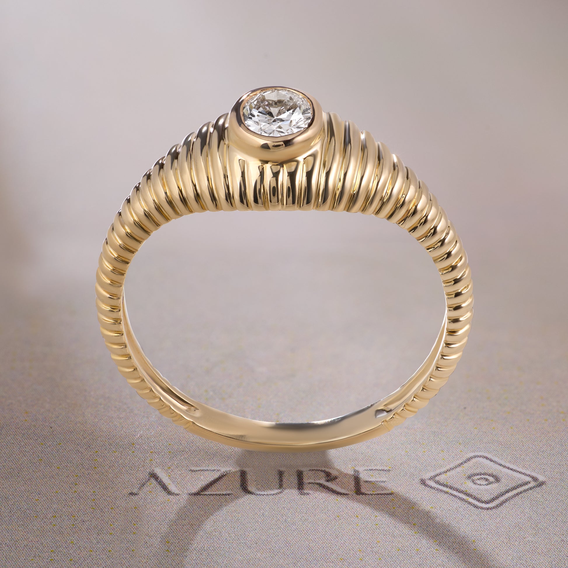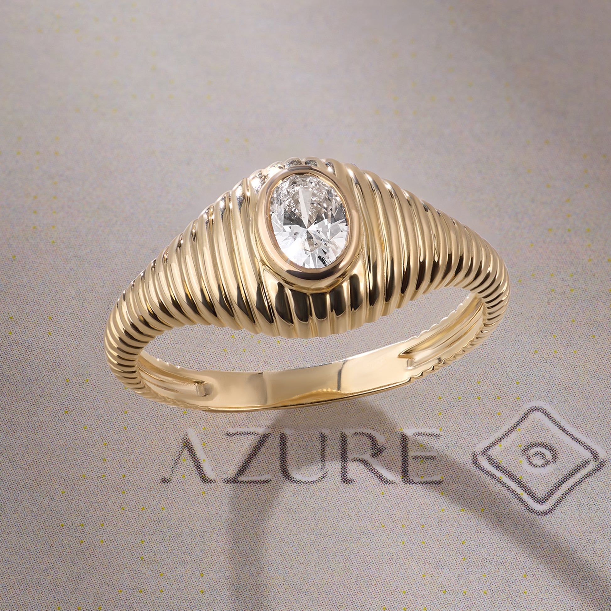 Elevate your everyday elegance with this striking 14K yellow gold statement ring. Featuring a captivating oval diamond in a secure bezel setting, the piece showcases a distinctive ribbed dome design that catches light beautifully from every angle. The refined sparkle and modern classic aesthetic make it equally at home at the office or evening occasions. A versatile investment piece that transcends trends while delivering timeless sophistication and understated luxury.