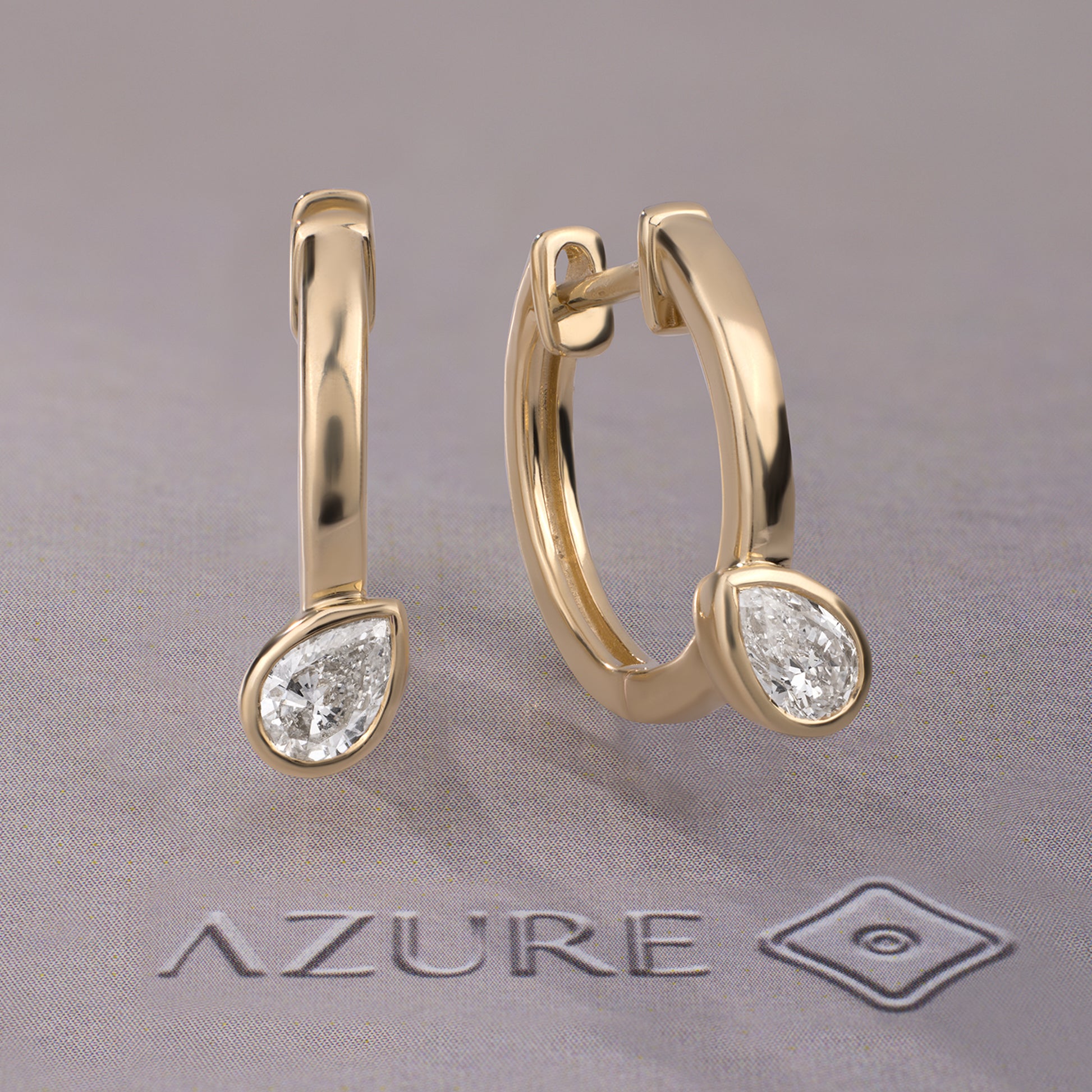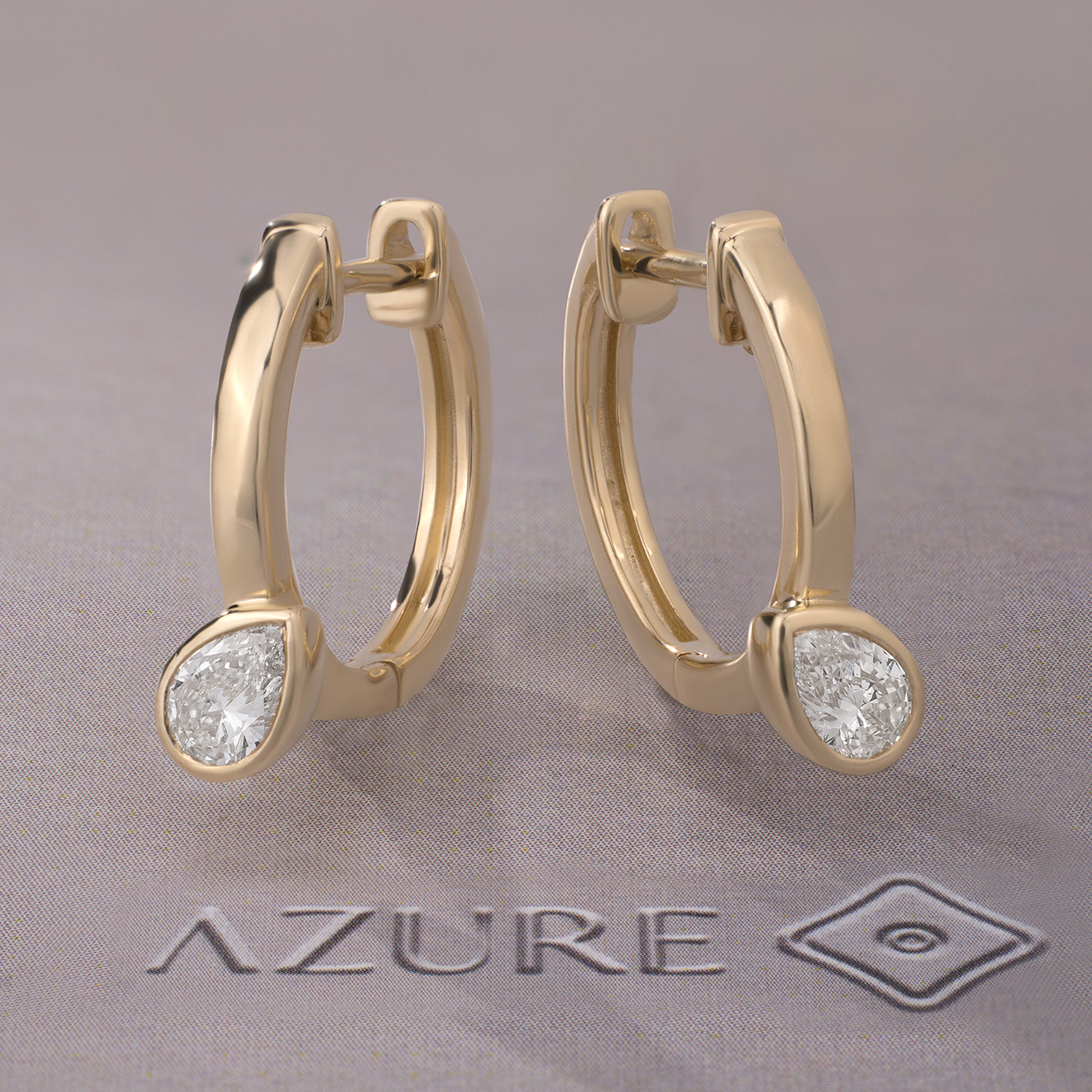 These 14K yellow gold pear-shaped diamond huggies earrings embody refined elegance in its purest form. With their minimalist design and luminous sparkle, they seamlessly bridge your day and evening moments. The gracefully contoured pear diamonds sit snugly against the ear, offering a whisper of luxury without ostentation. Crafted for the woman who values timeless pieces over fleeting trends, these gold hoops become an irreplaceable staple—sophisticated enough for formal occasions, yet understated enough for everyday wear. A true investment in enduring style.